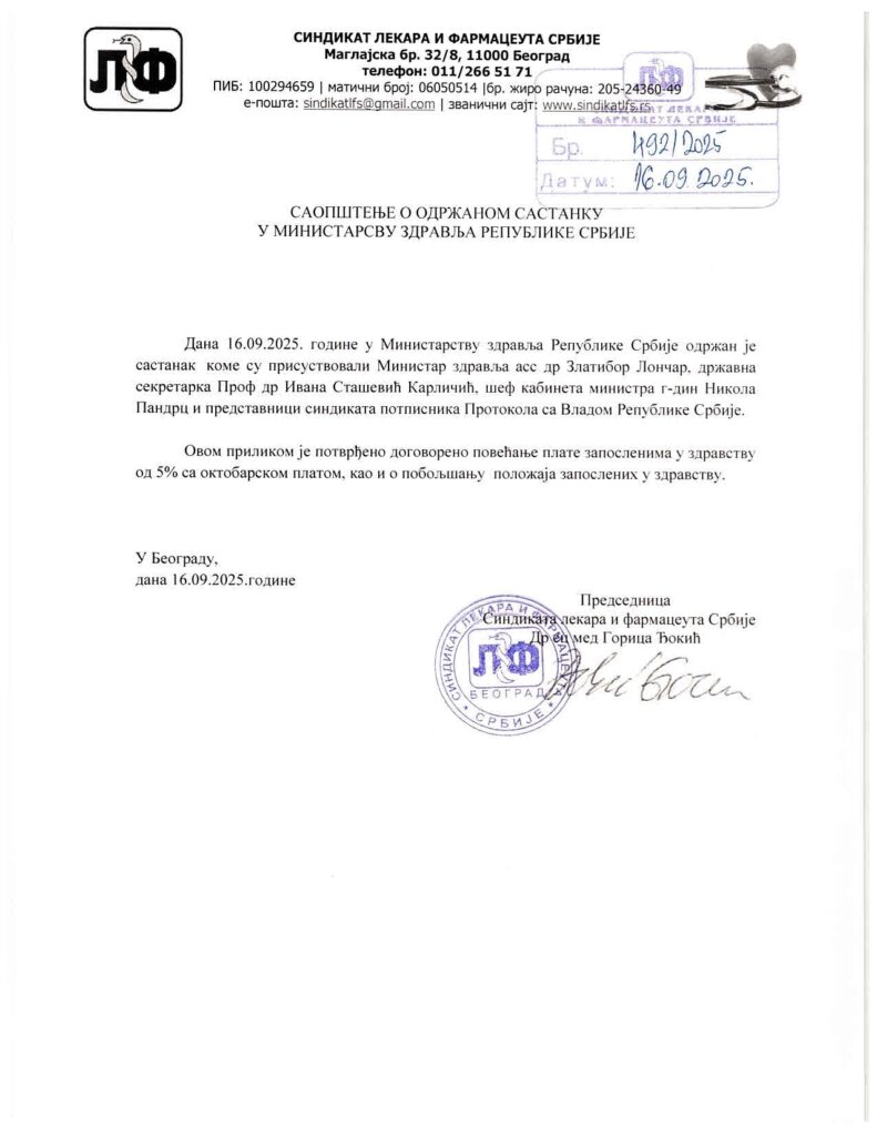 - Саопштење за јавност и чланство Синдиката лекара и фармацеута Србије February 12, 2026